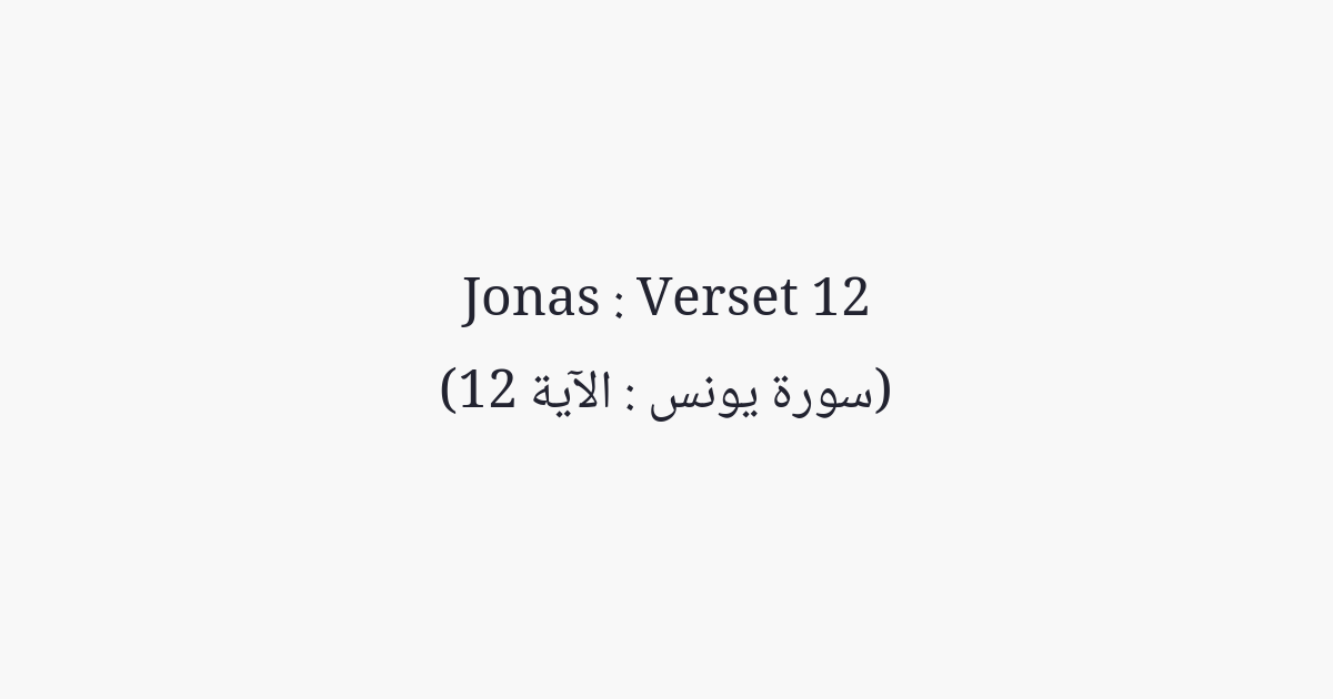 Et quand le malheur touche l'homme, il fait appel à Nous, couché sur le côté, assis, ou debout. Puis quand Nous le délivrons de son malheur, il s'en va comme s'il ne Nous avait point imploré pour un mal qui l'a touché. C'est ainsi que furent embellies aux outranciers leurs actions.