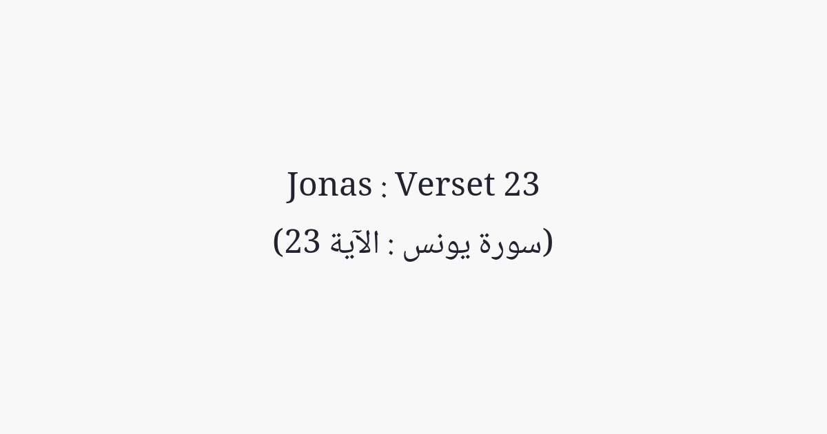 Lorsqu'Il les a sauvés, les voilà qui, sur terre, transgressent injustement. O gens! Votre transgression ne retombera que sur vous-mêmes. C'est une jouissance temporaire de la vie présente. Ensuite, c'est vers Nous que sera votre retour, et Nous vous rappellerons alors ce que vous faisiez.