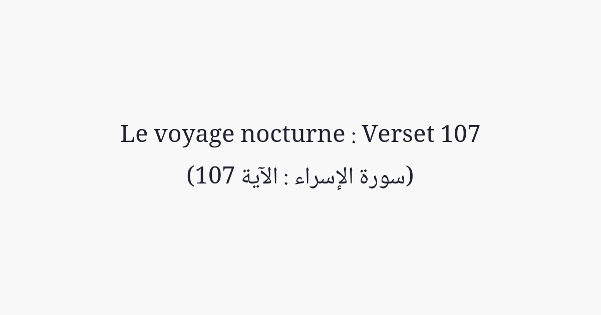 Dis: «Croyez-y ou n'y croyez pas. Ceux à qui la connaissance a été donnée avant cela, lorsqu'on le leur récite, tombent, prosternés, le menton contre terre