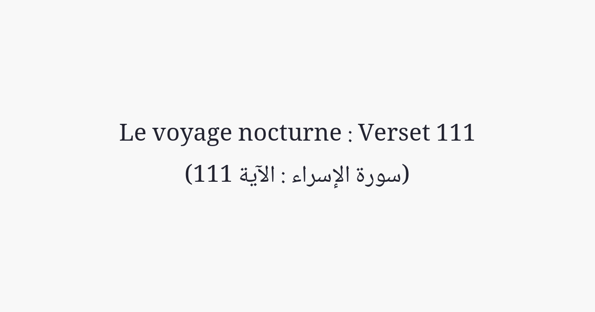 Et dis: «Louange à Allah qui ne S'est jamais attribué d'enfant, qui n'a point d'associé en la royauté et qui n'a jamais eu de protecteur de l'humiliation». Et proclame hautement Sa grandeur.