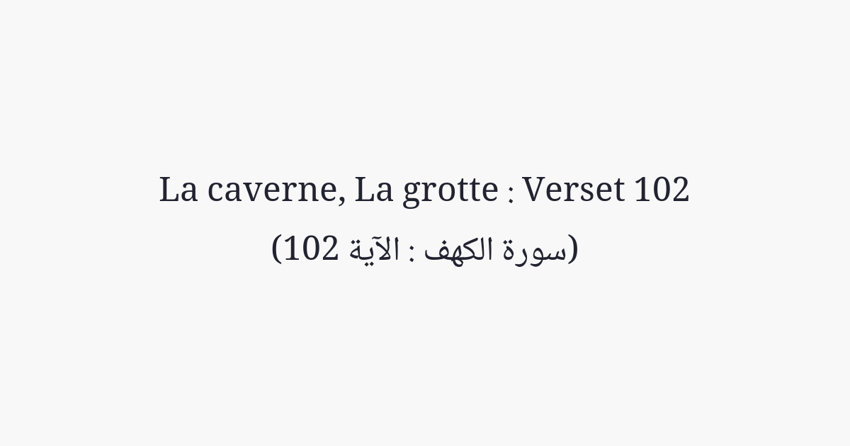 Ceux qui ont mécru, comptent-ils donc pouvoir prendre, pour alliés, Mes serviteurs en dehors de Moi? Nous avons préparé l'Enfer comme résidence pour les mécréants.