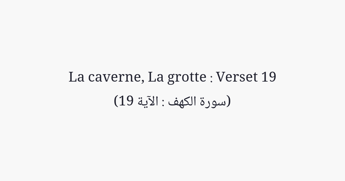 Et c'est ainsi que Nous les ressuscitâmes, afin qu'ils s'interrogent entre eux. L'un parmi eux dit: «Combien de temps avez-vous demeuré là?» Ils dirent: «Nous avons demeuré un jour ou une partie d'un jour». D'autres dirent: «Votre Seigneur sait mieux combien [de temps] vous y avez demeuré. Envoyez donc l'un de vous à la ville avec votre argent que voici, pour qu'il voie quel aliment est le plus pur et qu'il vous en apporte de quoi vous nourrir. Qu'il agisse avec tact; et qu'il ne donne l'éveil à personne sur vous.