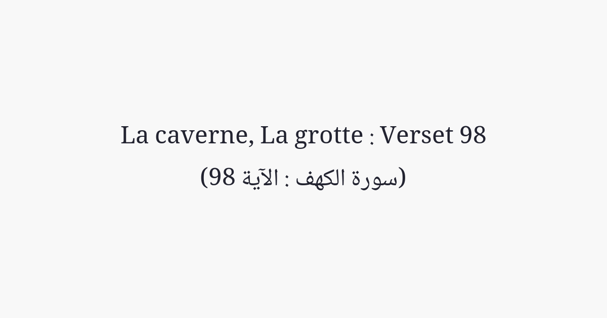 Il dit: «C'est une miséricorde de la part de mon Seigneur. Mais, lorsque la promesse de mon Seigneur viendra, Il le nivellera. Et la promesse de mon Seigneur est vérité».