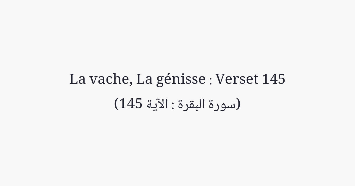 Certes si tu apportais toutes les preuves à ceux à qui le Livre a été donné, ils ne suivraient pas ta direction (Qibla)! Et tu ne suivras pas la leur; et entre eux, les uns ne suivent pas la direction des autres. Et si tu suivais leurs passions après ce que tu as reçu de science, tu serais, certes, du nombre des injustes.
