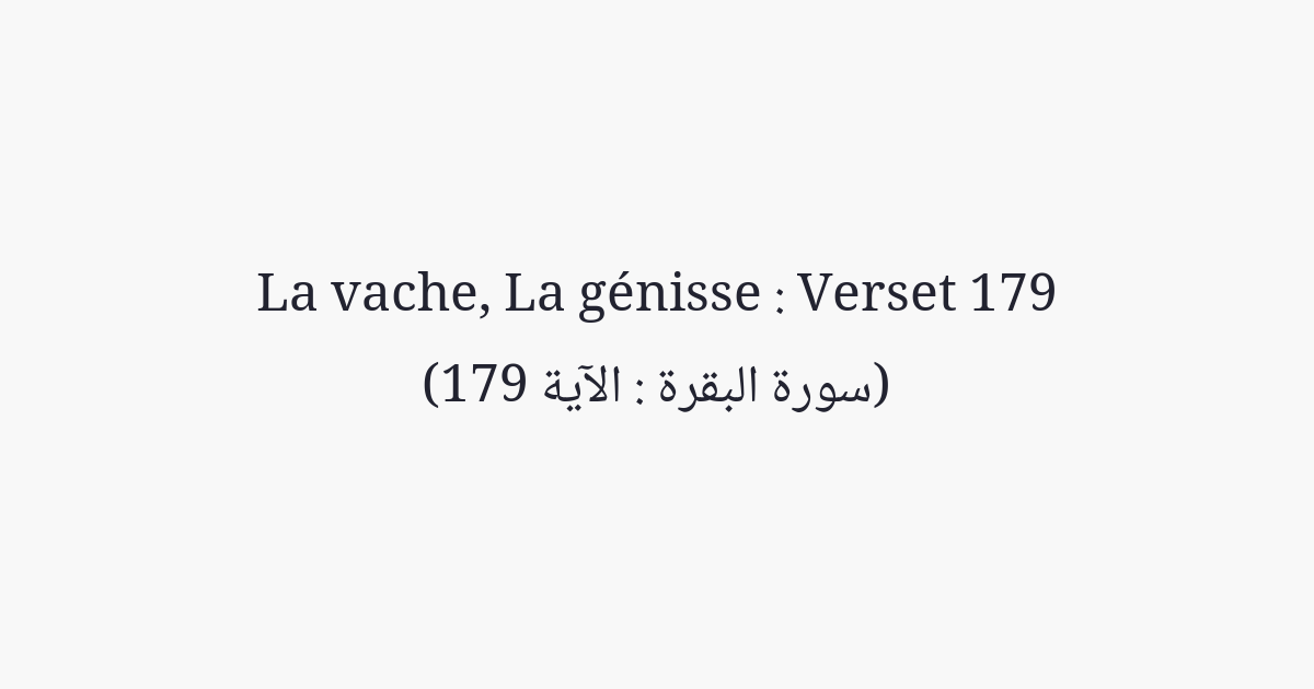 C'est dans le talion que vous aurez la préservation de la vie, ô vous doués d'intelligence, ainsi atteindrez-vous la piété.