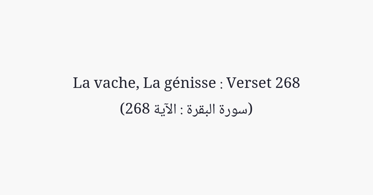 Le Diable vous fait craindre l'indigence et vous commande des actions honteuses; tandis qu'Allah vous promet pardon et faveur venant de Lui. La grâce d'Allah est immense et Il est Omniscient.