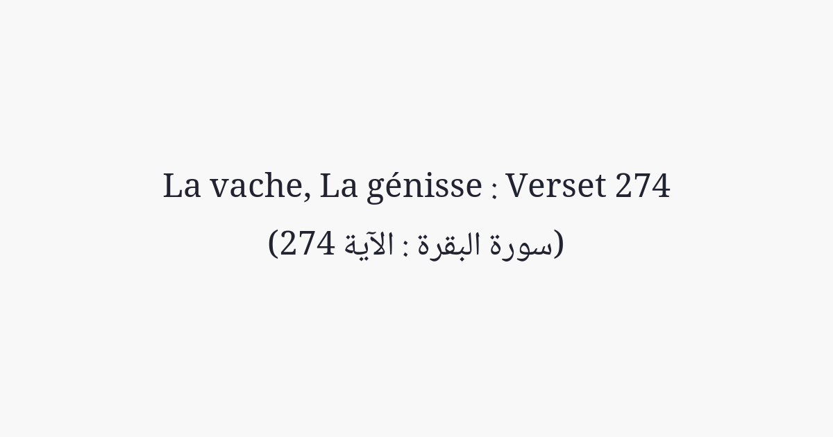 Ceux qui, de nuit et de jour, en secret et ouvertement, dépensent leurs biens (dans les bonnes œuvres), ont leur salaire auprès de leur Seigneur. Ils n'ont rien à craindre et ils ne seront point affligés.