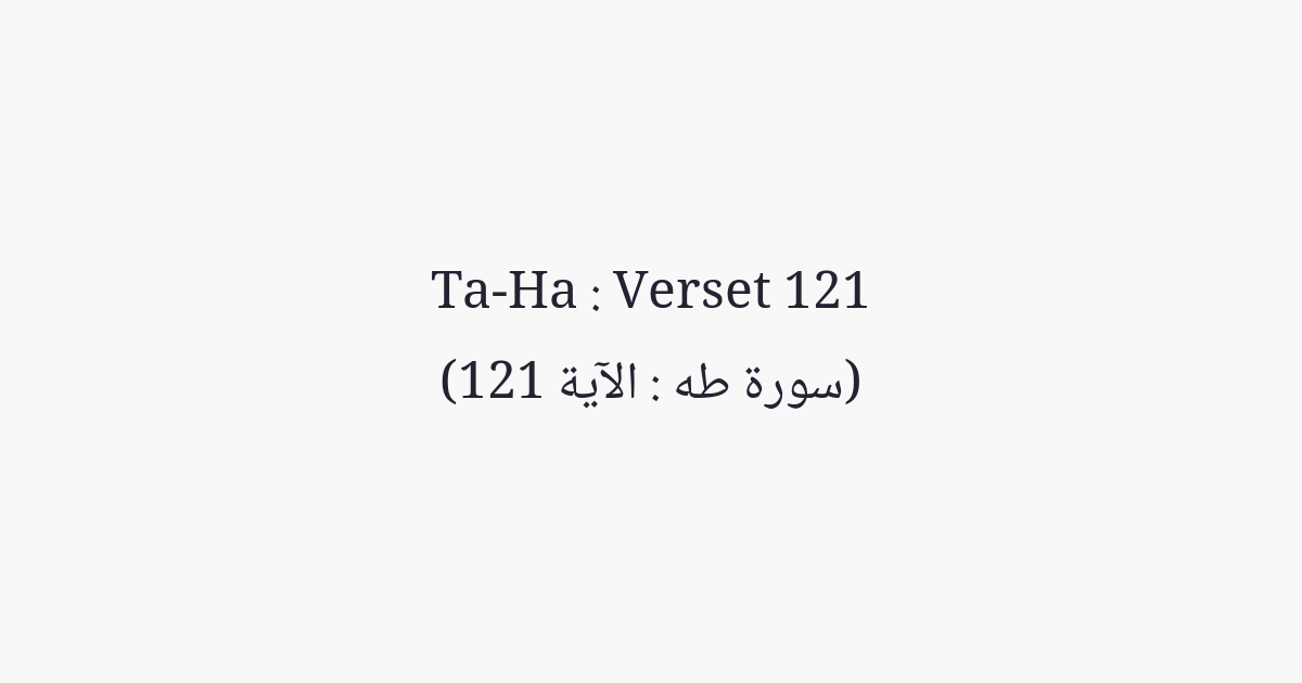 Tous deux (Adam et Eve) en mangèrent. Alors leur apparut leur nudité. Ils se mirent à se couvrir avec des feuilles du paradis. Adam désobéit ainsi à son Seigneur et il s'égara.