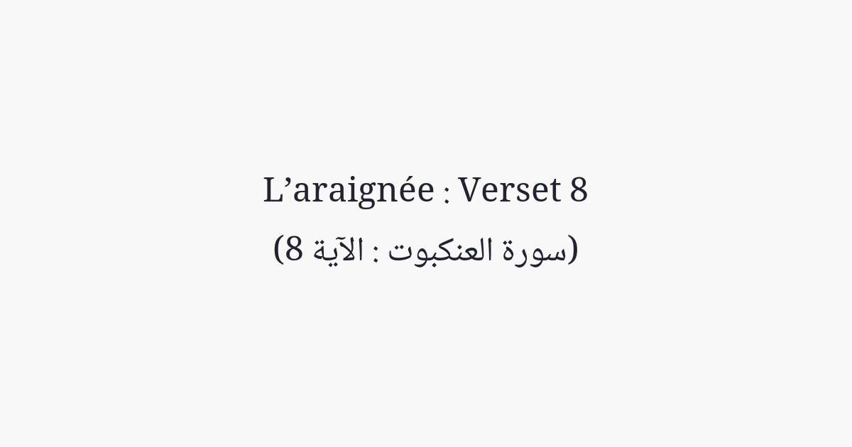 Et Nous avons enjoint à l'homme de bien traiter ses père et mère, et «si ceux-ci te forcent à M'associer, ce dont tu n'as aucun savoir, alors ne leur obéis pas». Vers Moi est votre retour, et alors Je vous informerai de ce que vous faisiez.