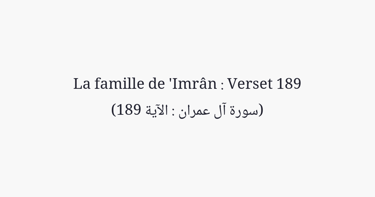 A Lui appartient la souveraineté des cieux et de la terre. Il fait vivre et il fait mourir, et Il est Omnipotent.