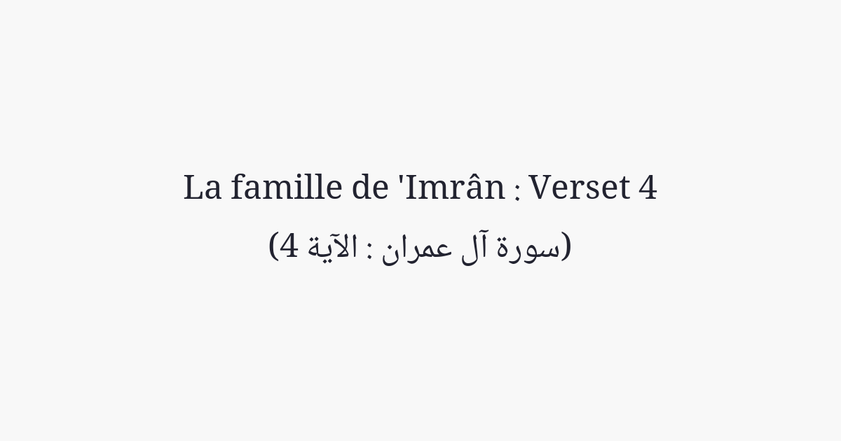 مِن قَبْلُ هُدًى لِّلنَّاسِ وَأَنزَلَ ٱلْفُرْقَانَ إِنَّ ٱلَّذِينَ كَفَرُوا۟ بِـَٔايَٰتِ ٱللَّهِ لَهُمْ عَذَابٌ شَدِيدٌ وَٱللَّهُ عَزِيزٌ ذُو ٱنتِقَامٍ (4)