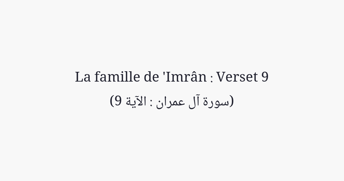 Seigneur! C'est Toi qui rassembleras les gens, un jour - en quoi il n'y a point de doute - Allah, vraiment, ne manque jamais à Sa promesse.»