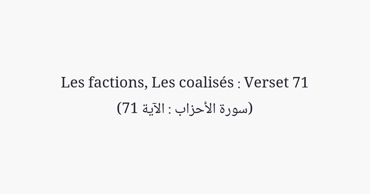 afin qu'Il améliore vos actions et vous pardonne vos péchés. Quiconque obéit à Allah et à Son messager obtient certes une grande réussite.