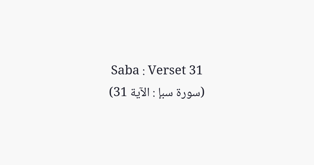 وَقَالَ ٱلَّذِينَ كَفَرُوا۟ لَن نُّؤْمِنَ بِهَٰذَا ٱلْقُرْءَانِ وَلَا بِٱلَّذِى بَيْنَ يَدَيْهِ وَلَوْ تَرَىٰٓ إِذِ ٱلظَّٰلِمُونَ مَوْقُوفُونَ عِندَ رَبِّهِمْ يَرْجِعُ بَعْضُهُمْ إِلَىٰ بَعْضٍ ٱلْقَوْلَ يَقُولُ ٱلَّذِينَ ٱسْتُضْعِفُوا۟ لِلَّذِينَ ٱسْتَكْبَرُوا۟ لَوْلَآ أَنتُمْ لَكُنَّا مُؤْمِنِينَ