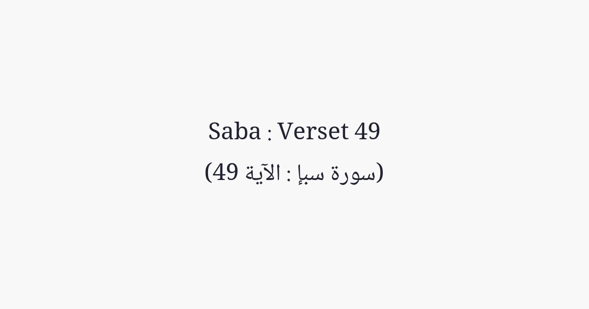 Dis: «La vérité [l'Islam] est venue. Et le Faux [la mécréance] ne peut rien commencer ni renouveler».