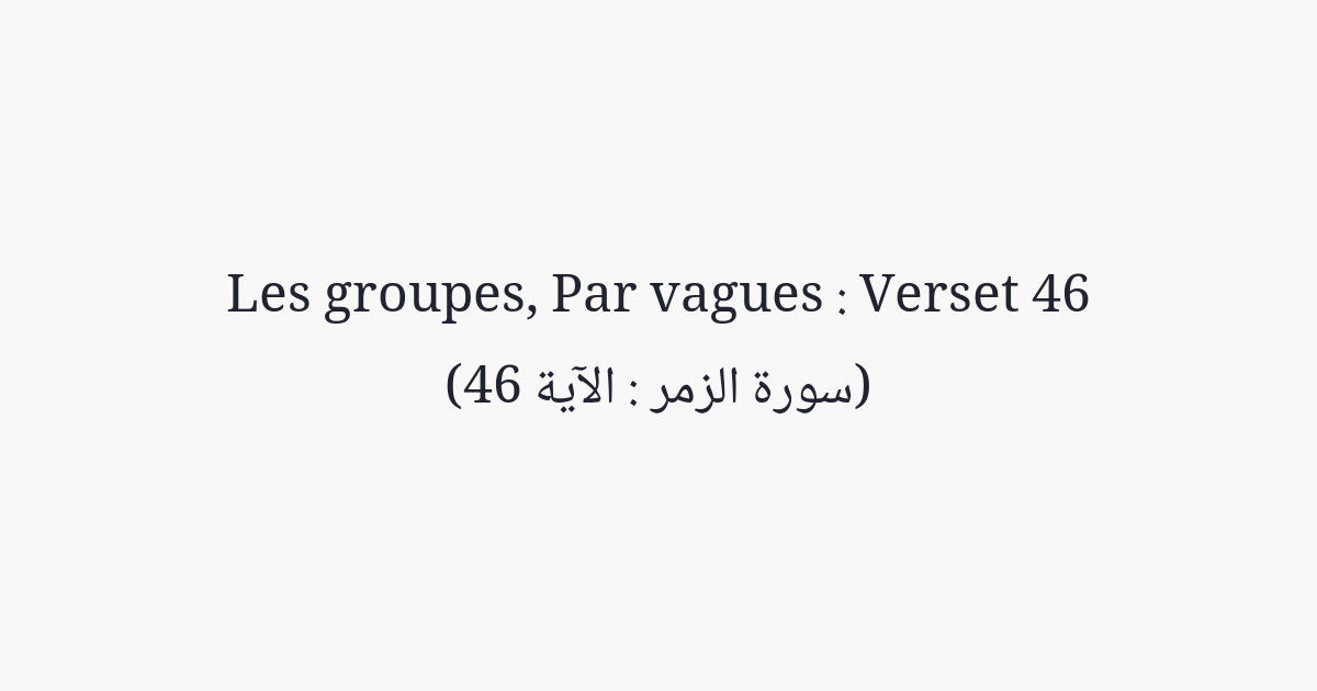 Dis: «O Allah, Créateur des cieux et de la terre, Connaisseur de tout ce que le monde ignore comme de ce qu'il perçoit, c'est Toi qui jugeras entre Tes serviteurs ce sur quoi ils divergeaient».