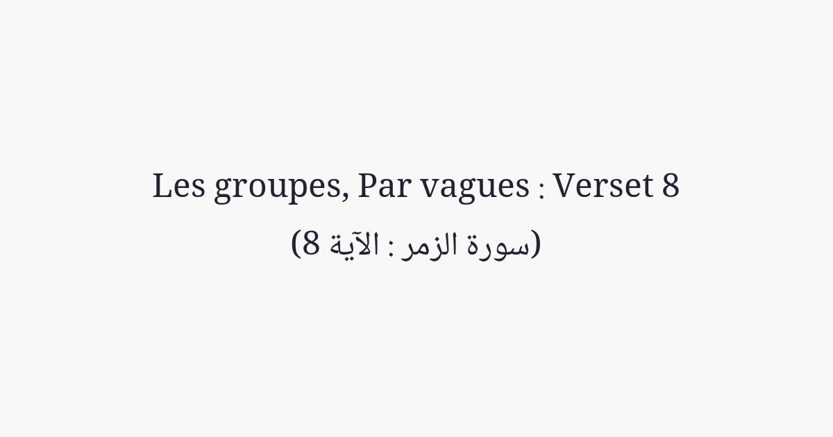 Et quand un malheur touche l'homme, il appelle son Seigneur en se tournant vers Lui. Puis quand Il lui accorde de Sa part un bienfait, il oublie la raison pour laquelle il faisait appel, et il assigne à Allah des égaux, afin d'égarer (les gens) de son chemin. Dis «Jouis de ta mécréance un court moment. Tu fais partie des gens du Feu».