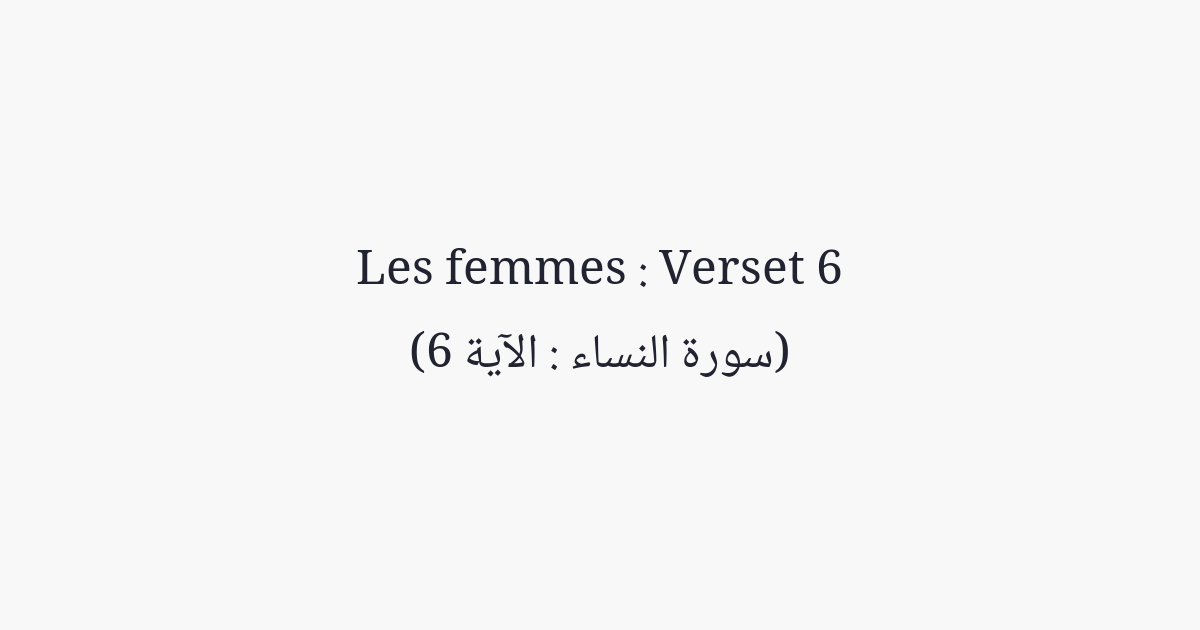 Et éprouvez (la capacité) des orphelins jusqu'à ce qu'ils atteignent (l'aptitude) au mariage; et si vous ressentez en eux une bonne conduite, remettez-leur leurs biens. Ne les utilisez pas (dans votre intérêt) avec gaspillage et dissipation, avant qu'ils ne grandissent. Quiconque est aisé, qu'il s'abstienne d'en prendre lui-même. S'il est pauvre, alors qu'il en utilise raisonnablement: et lorsque vous leur remettez leurs biens, prenez des témoins à leur encontre. Mais Allah suffit pour observer et compter.