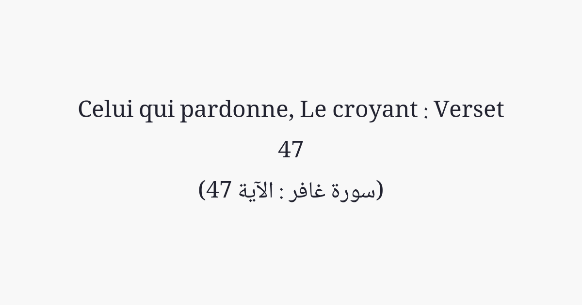 Et quand ils se disputeront dans le Feu, les faibles diront à ceux qui s'enflaient d'orgueil: «Nous vous avions suivis: pourriez-vous nous préserver d'une partie du feu?»