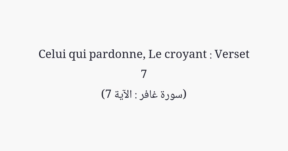 Ceux (les Anges) qui portent le Trône et ceux qui l'entourent célèbrent les louanges de leur Seigneur, croient en Lui et implorent le pardon pour ceux qui croient: «Seigneur! Tu étends sur toute chose Ta miséricorde et Ta science. Pardonne donc à ceux qui se repentent et suivent Ton chemin et protège-les du châtiment de l'Enfer.