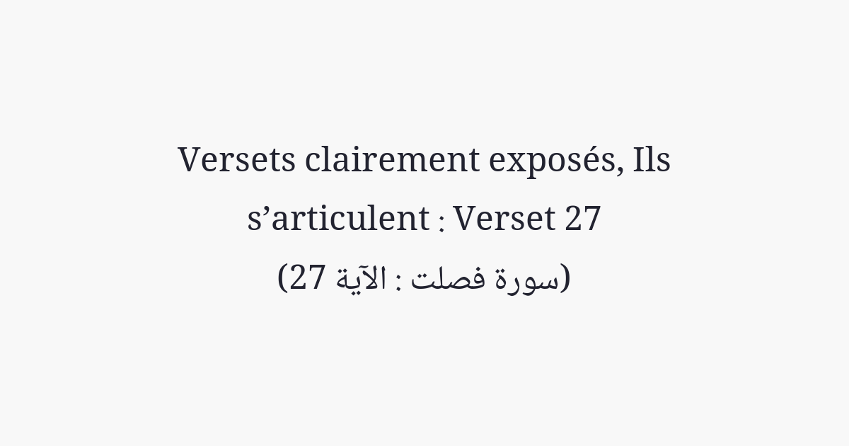 • Versets clairement exposés, Ils s’articulent : Verset 27