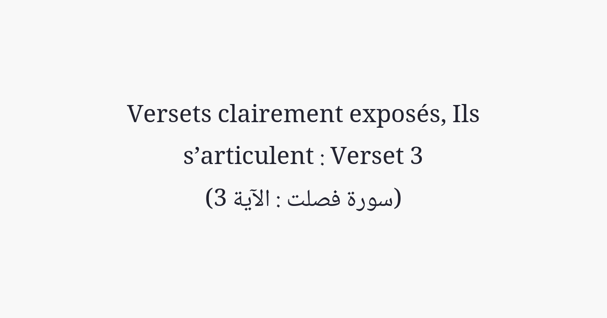 كِتَٰبٌ فُصِّلَتْ ءَايَٰتُهُۥ قُرْءَانًا عَرَبِيًّا لِّقَوْمٍ يَعْلَمُونَ (3)