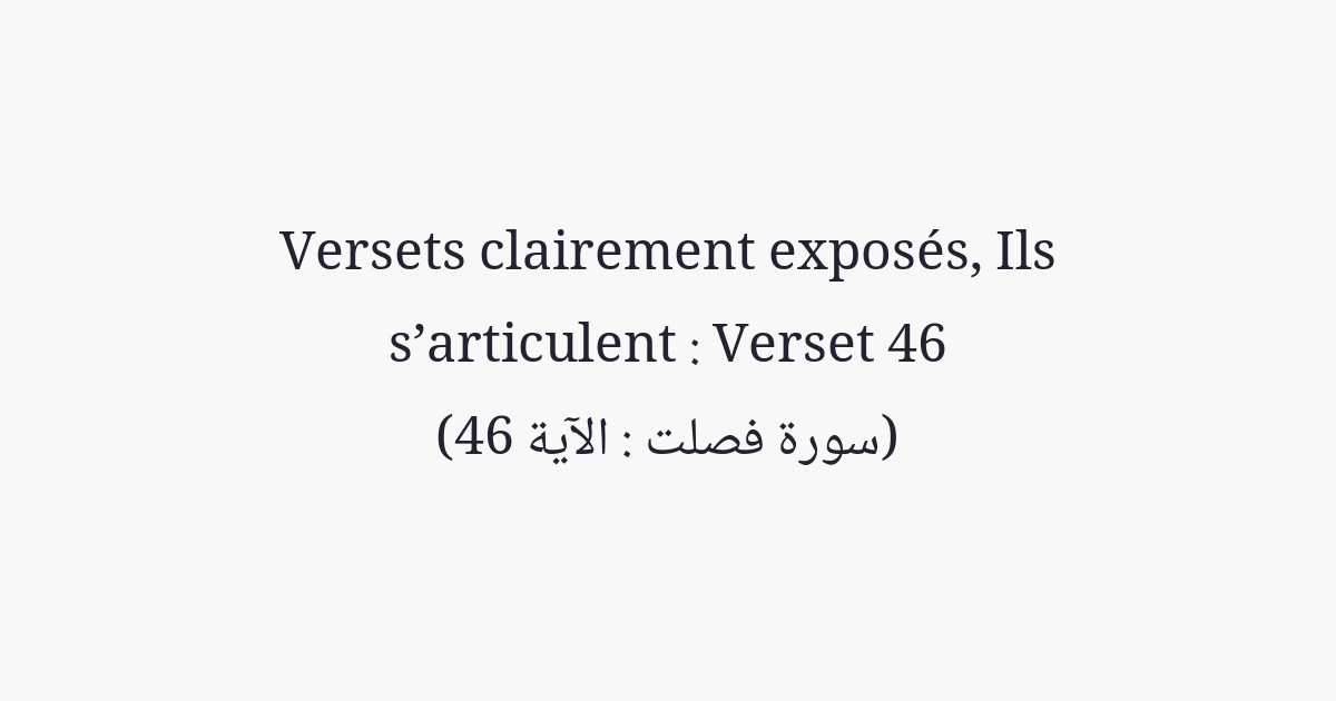 Quiconque fait une bonne œuvre, c'est pour son bien. Et quiconque fait le mal, il le fait à ses dépens. Ton Seigneur, cependant, n'est point injuste envers les serviteurs.