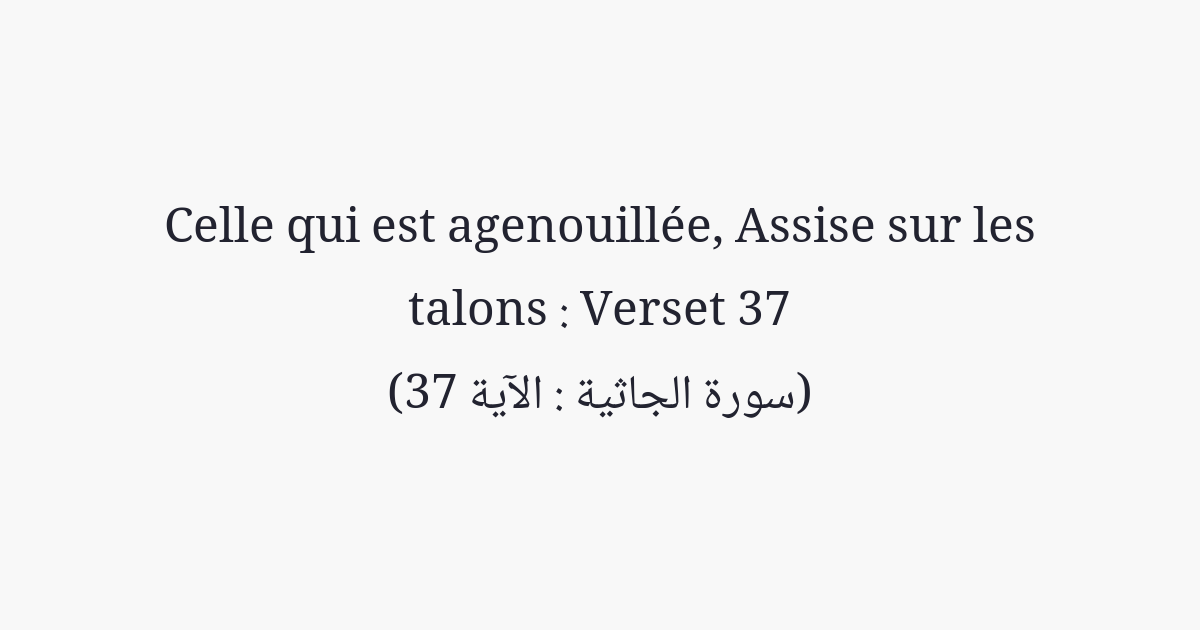 Les hommes ont autorité sur les femmes, en raison des faveurs qu'Allah accorde à ceux-là sur celles-ci, et aussi à cause des dépenses qu'ils font de leurs biens. Les femmes vertueuses sont obéissantes (à leurs maris), et protègent ce qui doit être protégé, pendant l'absence de leurs époux, avec la protection d'Allah. Et quant à celles dont vous craignez la désobéissance, exhortez-les, éloignez-vous d'elles dans leurs lits et frappez-les. Si elles arrivent à vous obéir, alors ne cherchez plus de voie contre elles, car Allah est certes, Haut et Grand!