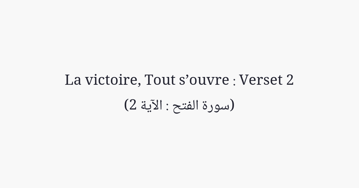 afin qu'Allah te pardonne tes péchés, passés et futurs, qu'Il parachève sur toi Son bienfait et te guide sur une voie droite;