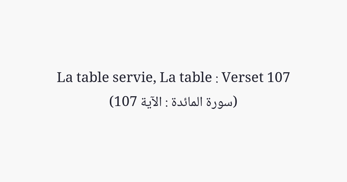 Si l'on découvre que ces deux témoins sont coupables de péché, deux autres plus intègres, parmi ceux auxquels le tort a été fait, prendront leur place et tous deux jureront par Allah: «En vérité, notre témoignage est plus juste que le témoignage de ces deux-là; et nous ne transgressons point. Sinon, nous serions certainement du nombre des injustes».