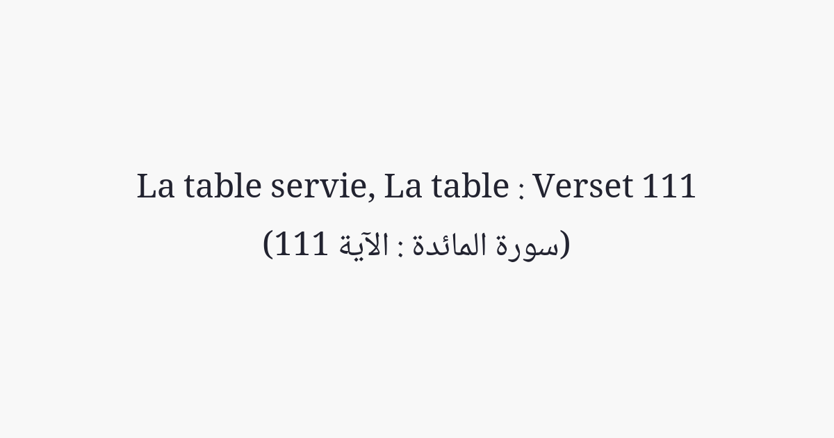 Et quand J'ai révélé aux Apôtres ceci: «Croyez en Moi et en Mon messager (Jésus)». Ils dirent: «Nous croyons; et atteste que nous sommes entièrement soumis».