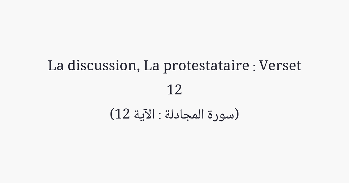 O vous qui avez cru! Quand vous avez un entretien confidentiel avec le Messager, faites précéder d'une aumône votre entretien: cela est meilleur pour vous et plus pur. Mais si vous n'en trouvez pas les moyens alors Allah est Pardonneur et très Miséricordieux!