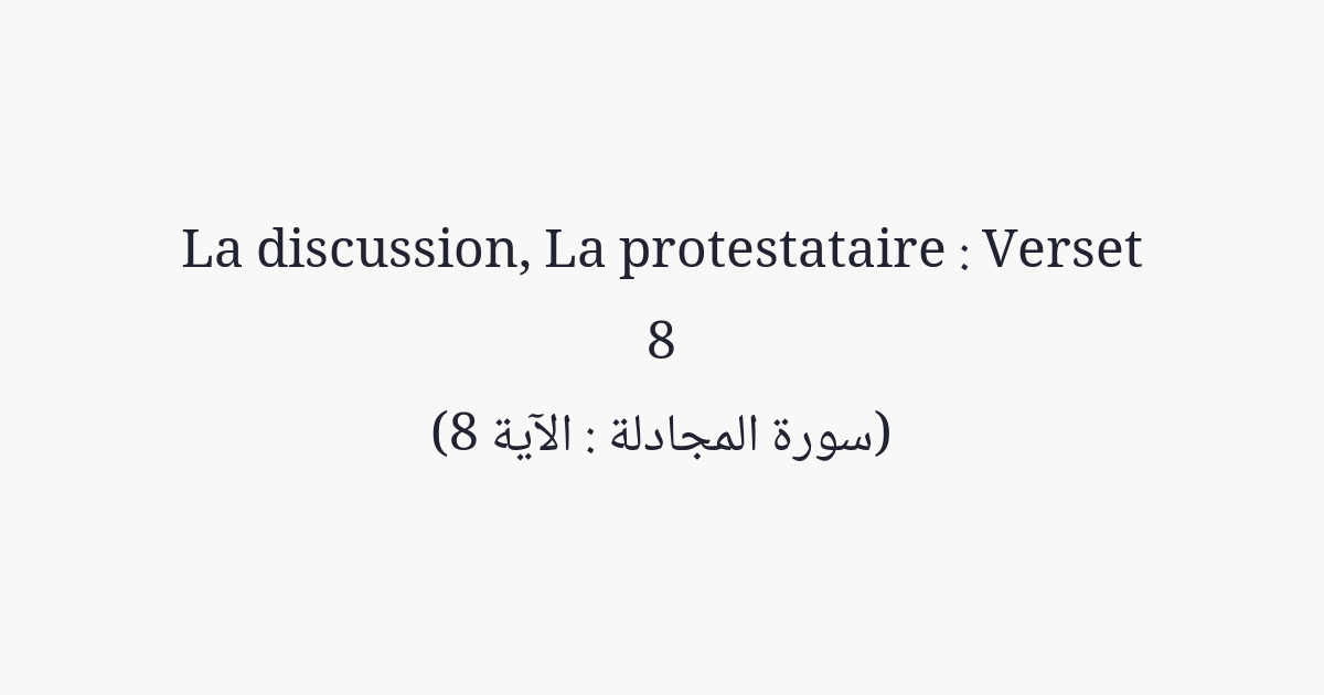 Ne vois-tu pas ceux à qui les conversations secrètes ont été interdites? Puis, ils retournent à ce qui leur a été interdit, et se concertent pour pécher, transgresser et désobéir au Messager. Et quand ils viennent à toi, ils te saluent d'une façon dont Allah ne t'a pas salué, et disent en eux-mêmes: «Pourquoi Allah ne nous châtie pas pour ce que nous disons?» L'Enfer leur suffira, où ils brûleront. Et quelle mauvaise destination!