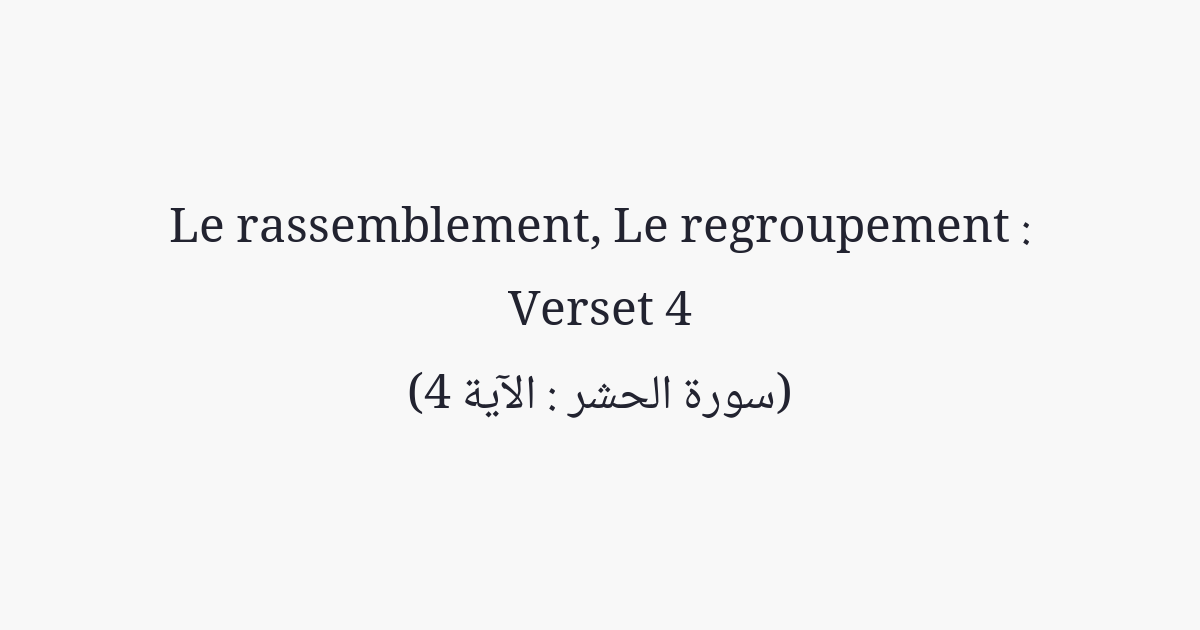 Le butin provenant [des biens] des habitants des cités, qu'Allah a accordé sans combat à Son Messager, appartient à Allah, au Messager, aux proches parents, aux orphelins, aux pauvres et au voyageur en détresse, afin que cela ne circule pas parmi les seuls riches d'entre vous. Prenez ce que le Messager vous donne; et ce qu'il vous interdit, abstenez-vous en; et craignez Allah car Allah est dur en punition.