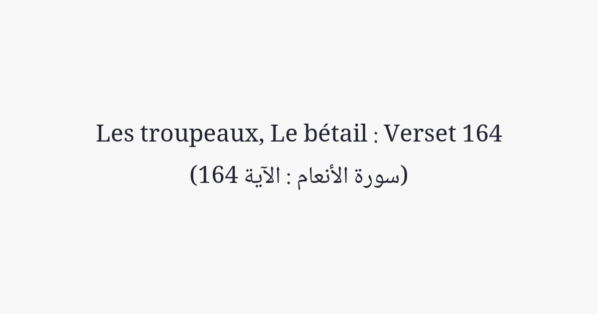 Dis: «Chercherais-je un autre Seigneur qu'Allah, alors qu'Il est le Seigneur de toute chose? Chacun n'acquiert [le mal] qu'à son détriment: personne ne portera le fardeau (responsabilité) d'autrui. Puis vers votre Seigneur sera votre retour et Il vous informera de ce en quoi vous divergez.