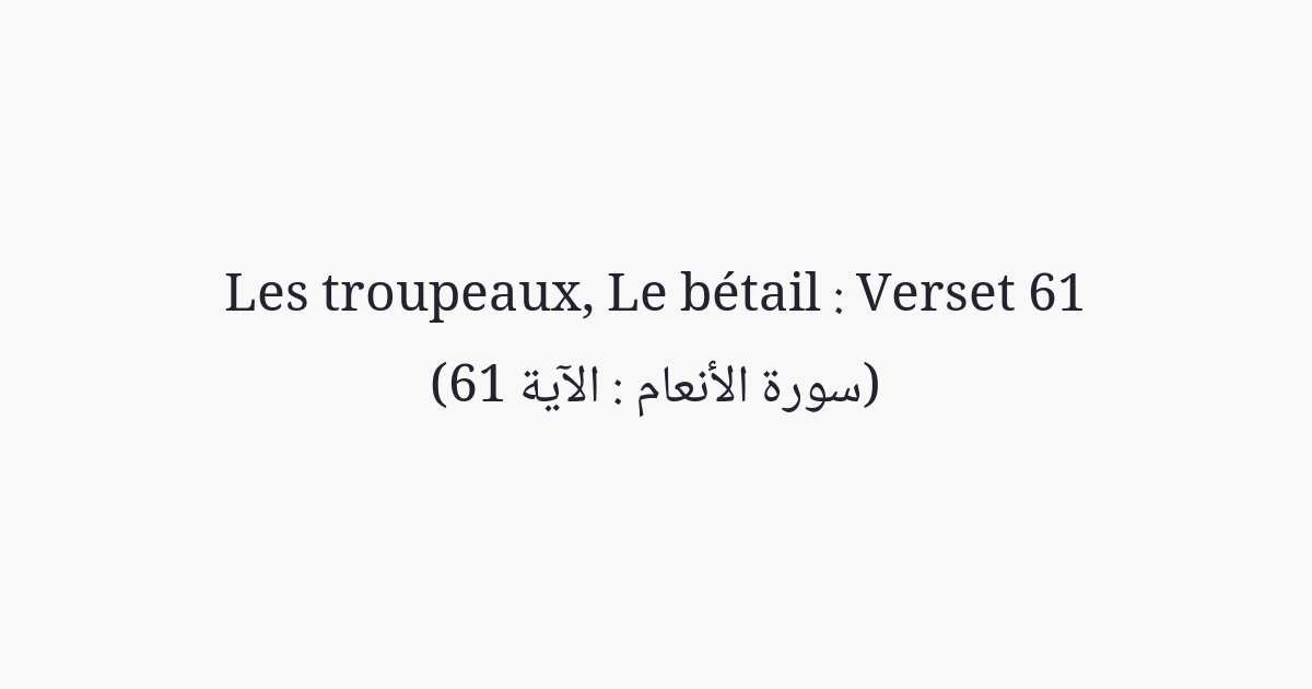 Et Il est le Dominateur Suprême sur Ses serviteurs. Et Il envoie sur vous des gardiens. Et lorsque la mort atteint l'un de vous, Nos messagers (les Anges) enlèvent son âme sans aucune négligence.