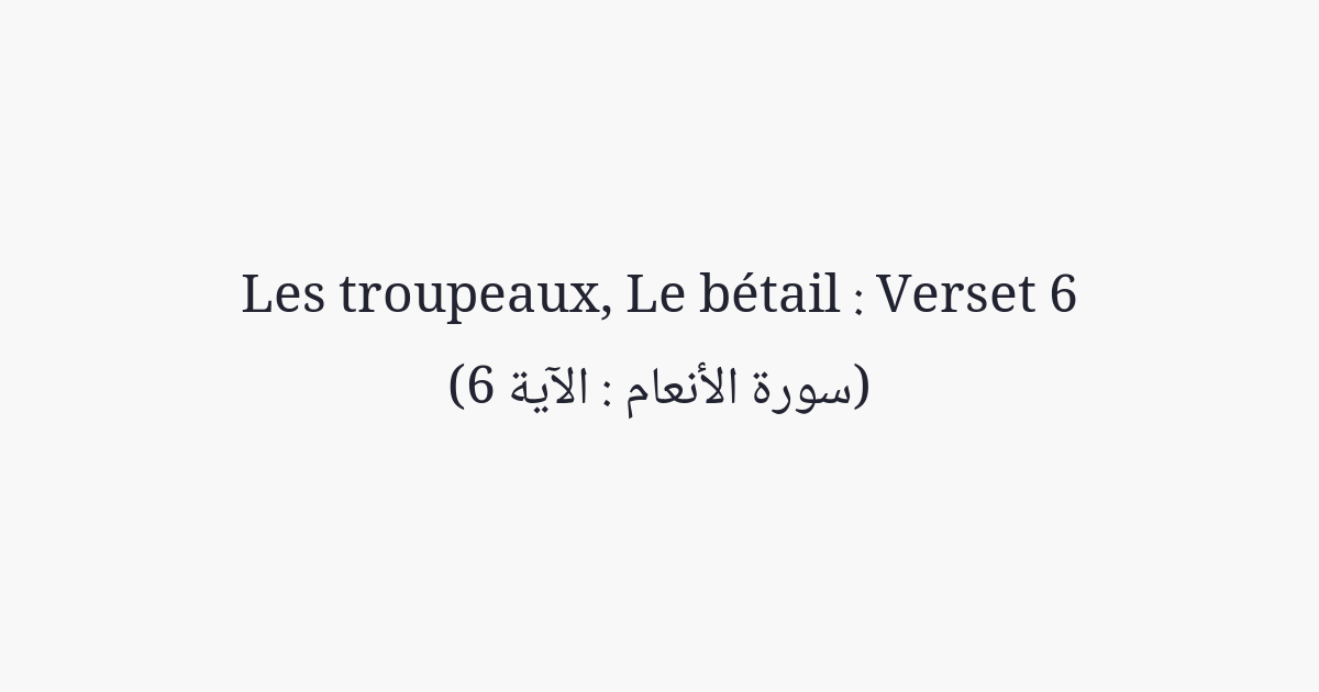 N'ont-ils pas vu combien de générations, avant eux, Nous avons détruites, auxquelles Nous avions donné pouvoir sur terre, bien plus que ce que Nous vous avons donnés? Nous avions envoyé, sur eux, du ciel, la pluie en abondance, et Nous avions fait couler des rivières à leurs pieds. Puis Nous les avons détruites, pour leurs péchés; et Nous avons créé après eux, une nouvelle génération.