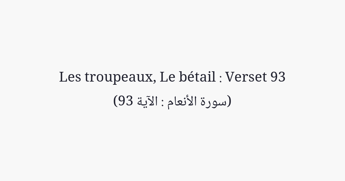 Et quel pire injuste que celui qui fabrique un mensonge contre Allah ou qui dit: «Révélation m'a été faite», quand rien ne lui a été révélé. De même celui qui dit: «Je vais faire descendre quelque chose de semblable à ce qu'Allah a fait descendre.» Si tu voyais les injustes lorsqu'ils seront dans les affres de la mort, et que les Anges leur tendront les mains (disant): «Laissez sortir vos âmes. Aujourd'hui vous allez être récompensés par le châtiment de l'humiliation pour ce que vous disiez sur Allah d'autre que la vérité et parce que vous vous détourniez orgueilleusement de Ses enseignements».