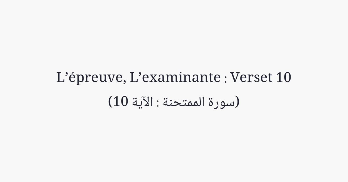 O vous qui avez cru! Quand les croyantes viennent à vous en émigrées, éprouvez-les; Allah connaît mieux leur foi; si vous constatez qu'elles sont croyantes, ne les renvoyez pas aux mécréants. Elles ne sont pas licites [en tant qu'épouses] pour eux, et eux non plus ne sont pas licites [en tant qu'époux] pour elles. Et rendez-leur ce qu'ils ont dépensé (comme mahr). Il ne vous sera fait aucun grief en vous mariant avec elles quand vous leur aurez donné leur mahr. Et ne gardez pas de liens conjugaux avec les mécréantes. Réclamez ce que vous avez dépensé et que (les mécréants) aussi réclament ce qu'ils ont dépensé. Tel est le jugement d'Allah par lequel Il juge entre vous, et Allah est Omniscient et Sage.