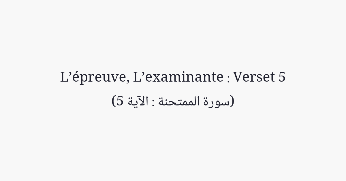 Seigneur, ne fais pas de nous [un sujet] de tentation pour ceux qui ont mécru; et pardonne-nous, Seigneur, car c'est Toi le Puissant, le Sage».