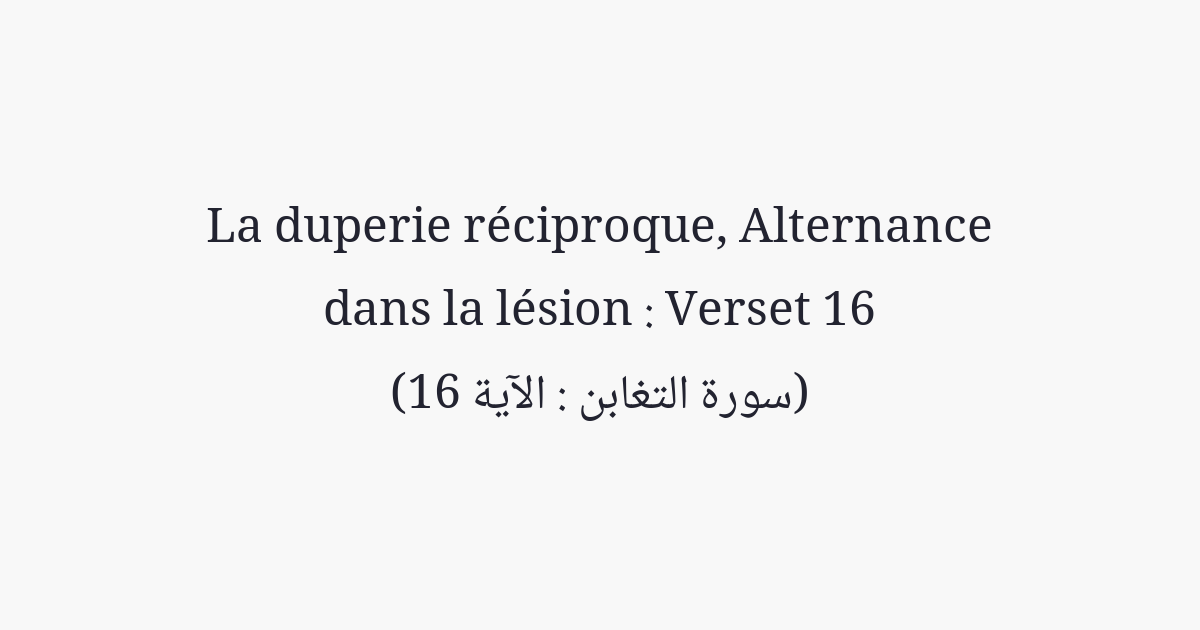 Craignez Allah, donc autant que vous pouvez, écoutez, obéissez et faites largesses. Ce sera un bien pour vous. Et quiconque a été protégé contre sa propre avidité... ceux-là sont ceux qui réussissent.