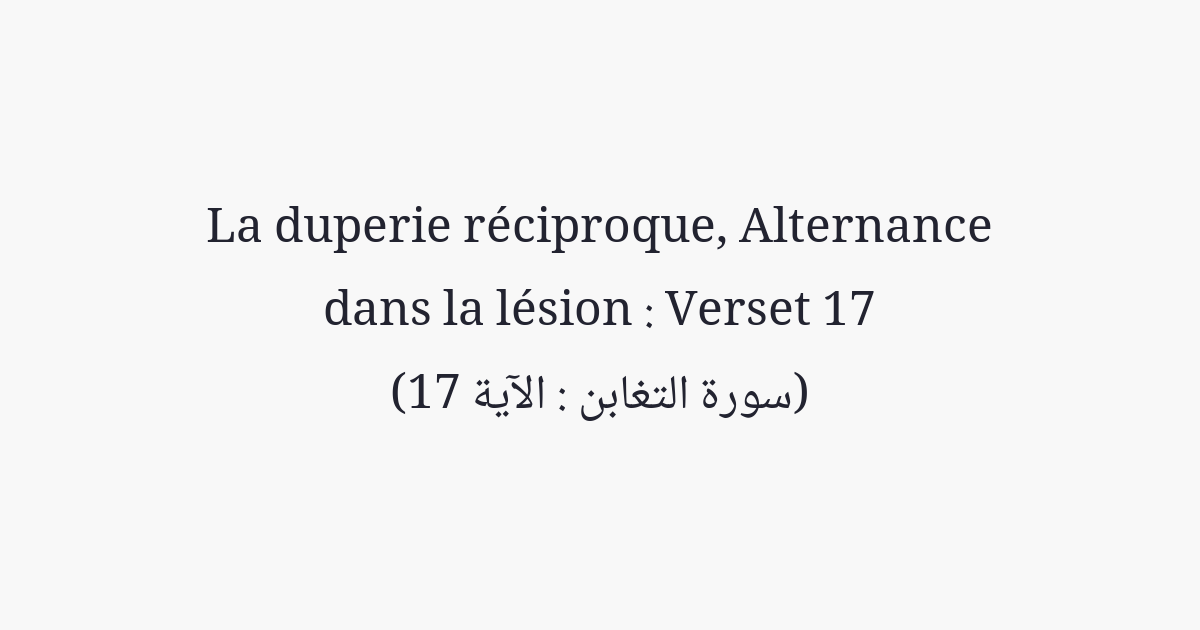 Si vous faites à Allah un prêt sincère, Il le multipliera pour vous et vous pardonnera. Allah cependant est très Reconnaissant et Indulgent.