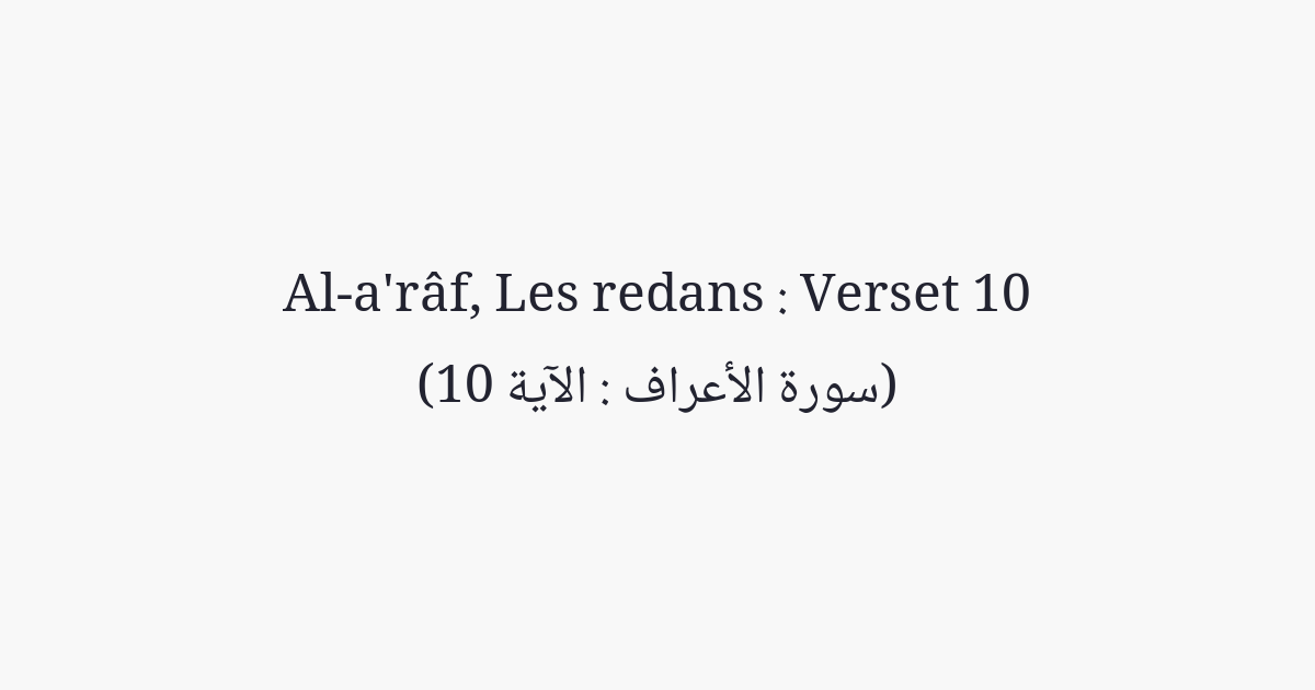 Certes, Nous vous avons donné du pouvoir sur terre et Nous vous y avons assigné subsistance. (Mais) vous êtes très peu reconnaissants!