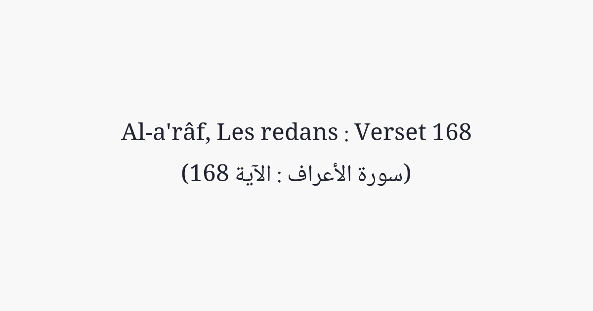Et Nous les avons répartis en communautés sur la terre. Il y a parmi eux des gens de bien, mais il y en a qui le sont moins. Nous les avons éprouvés par des biens et par des maux, peut-être reviendraient-ils (au droit chemin).