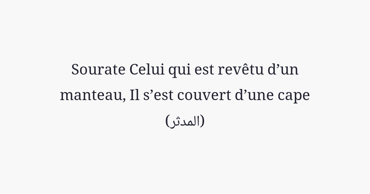 O, toi (Muhammad)! Le revêtu d'un manteau!