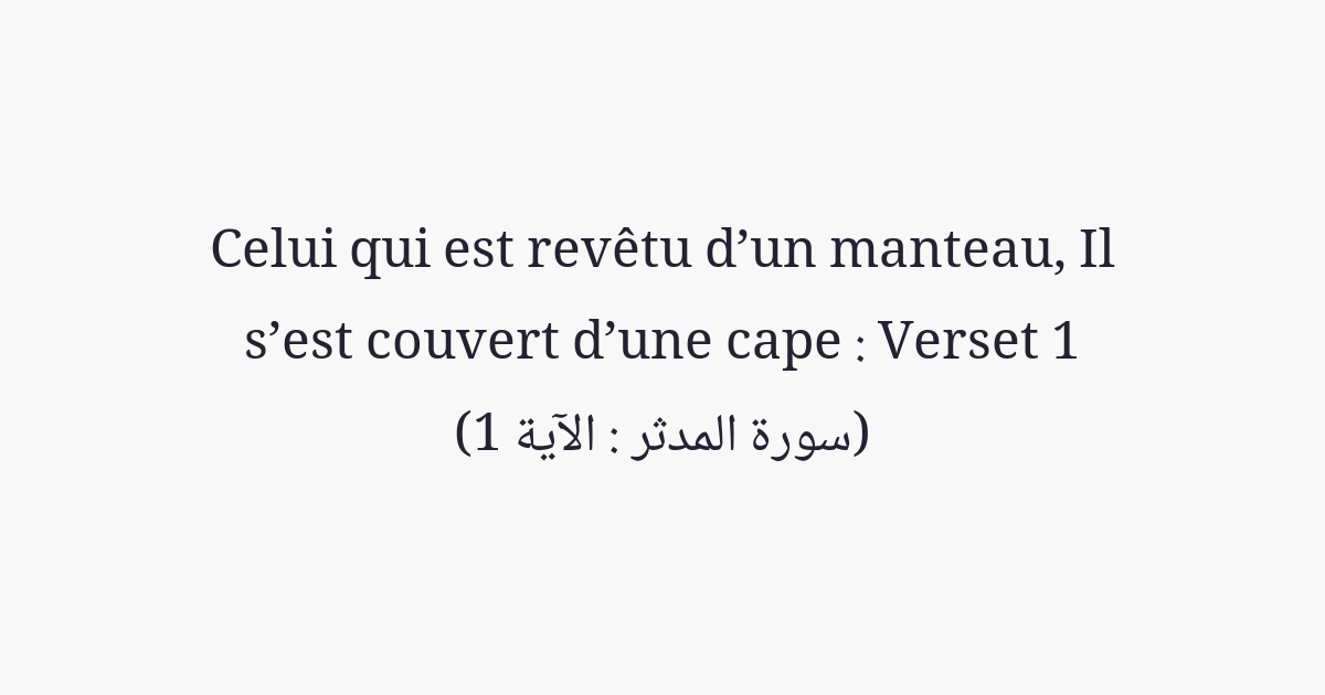 O, toi (Muhammad)! Le revêtu d'un manteau!