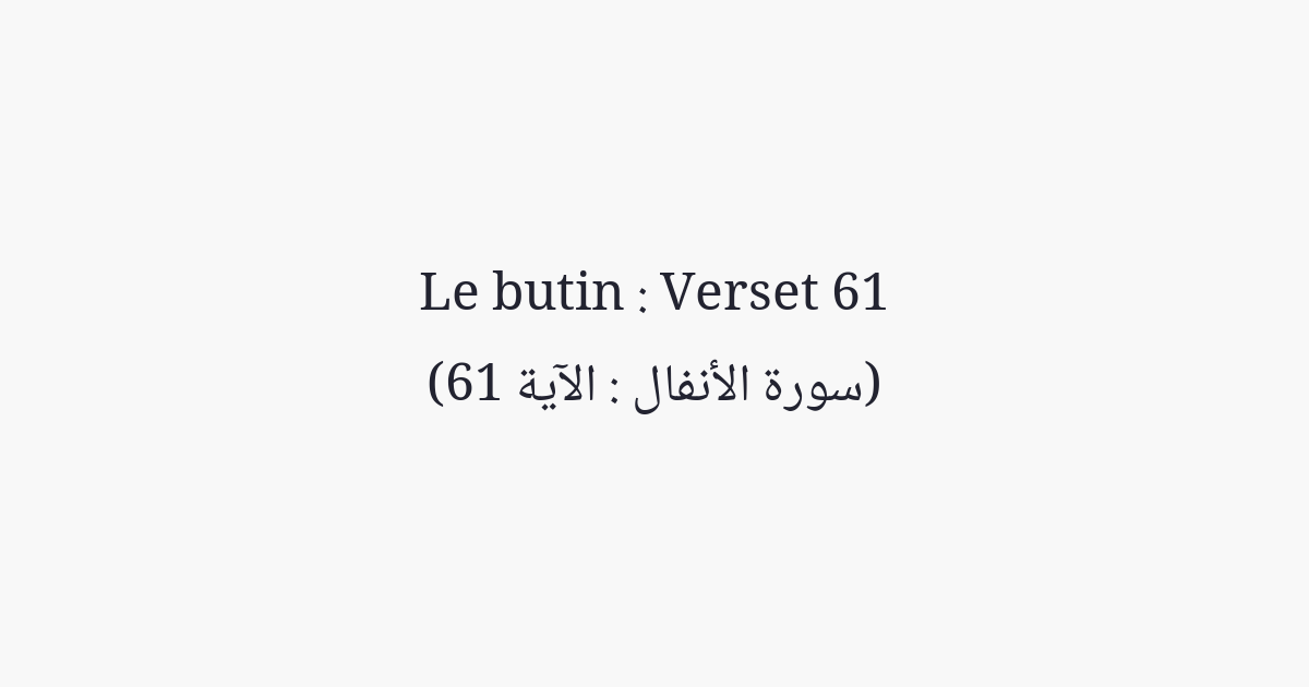 Et s'ils inclinent à la paix, incline vers celle-ci (toi aussi) et place ta confiance en Allah, car c'est Lui l'Audient, l'Omniscient.