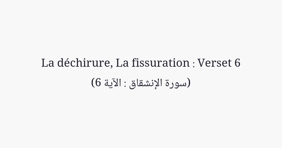 O homme! Toi qui t'efforces vers ton Seigneur sans relâche, tu Le rencontreras alors.