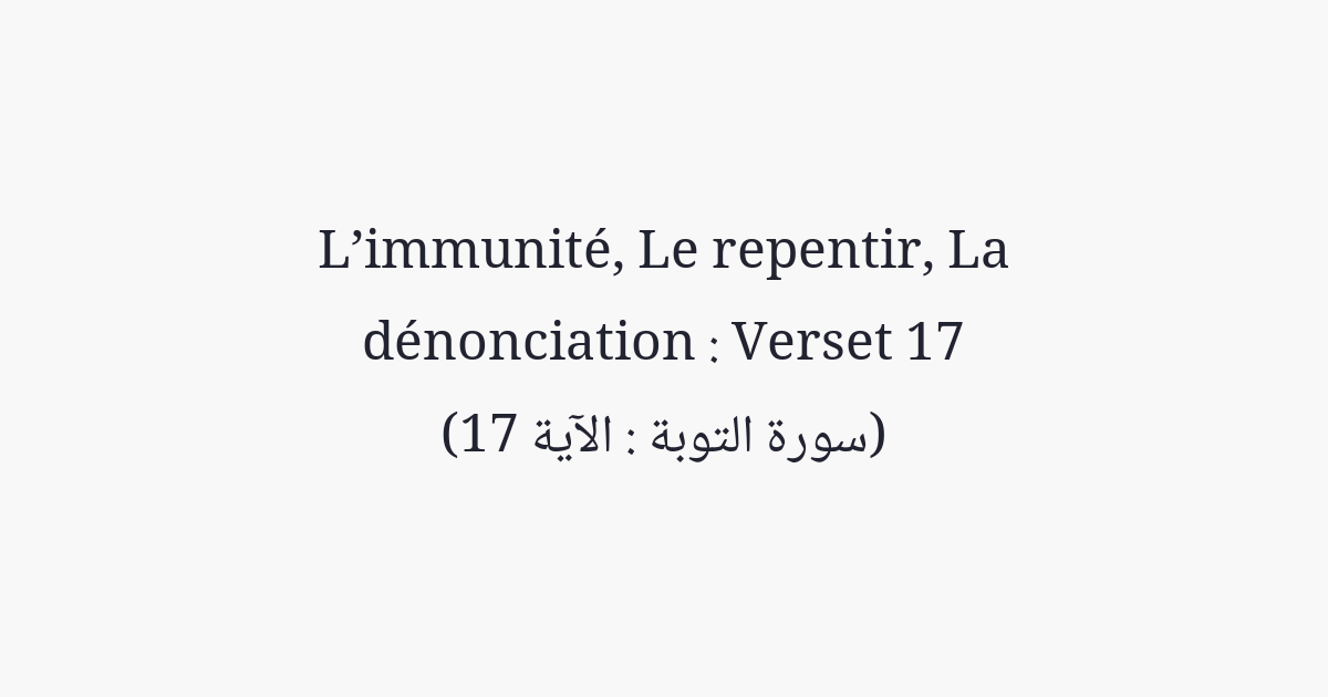 Il n'appartient pas aux associateurs de peupler les mosquées d'Allah, vu qu'ils témoignent contre eux-mêmes de leur mécréance. Voilà ceux dont les œuvres sont vaines; et dans le Feu ils demeureront éternellement.