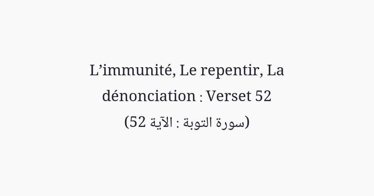 Dis: «Qu'attendez-vous pour nous, sinon l'une des deux meilleures choses? Tandis que ce que nous attendons pour vous, c'est qu'Allah vous inflige un châtiment de Sa part ou par nos mains. Attendez donc! Nous attendons aussi, avec vous».